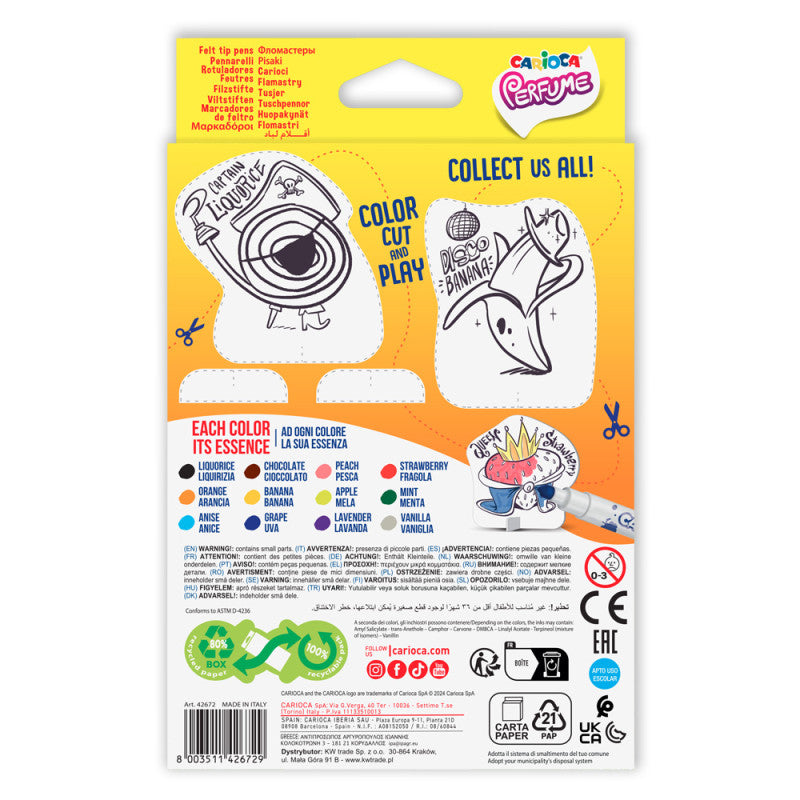 Dibuja, colorea y vive una experiencia sensorial única con los marcadores perfumados. Su tinta especial no solo ofrece colores vivos y lavables, sino que también libera deliciosos aromas seleccionados cuidadosamente para evocar las esencias más naturales.