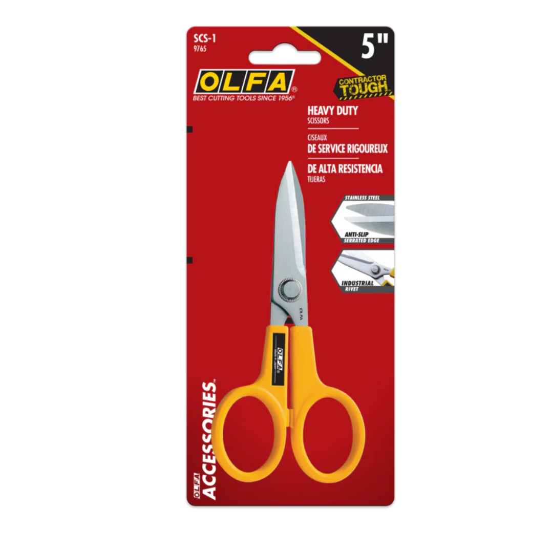Recurra a las tijeras OLFA SCS-1 de acero inoxidable y filo dentado para cualquier corte que requiera fuerza y gran capacidad de corte. Fabricadas en acero inoxidable resistente a la corrosión, ofrecen potencia de corte y resistencia incluso en los materiales más duros. Las hojas presentan un afilado uniforme desde la base hasta la punta para garantizar un corte limpio en toda la longitud del corte. Una de las hojas incluye un filo dentado para garantizar un agarre firme del material mientras corta, evitando resbalones y cortes incorrectos. La punta roma de la hoja añade un nivel extra de seguridad.